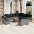 vidaXL 14-Piece Lounge Set with Cushions Poly Rattan Grey