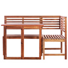 The table and corner bench are made of high-quality acacia wood, a tropical hardwood that is weather-resistant, highly durable, and suitable for outdoor use. The oil-finished surface is easy to clean with a damp cloth. The table folds for easy storage and transport. The set is easy to assemble.