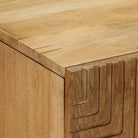 - Materiaal: Mango woestijnbruine afwerking met CNC-front, bewerkt hout, metaal