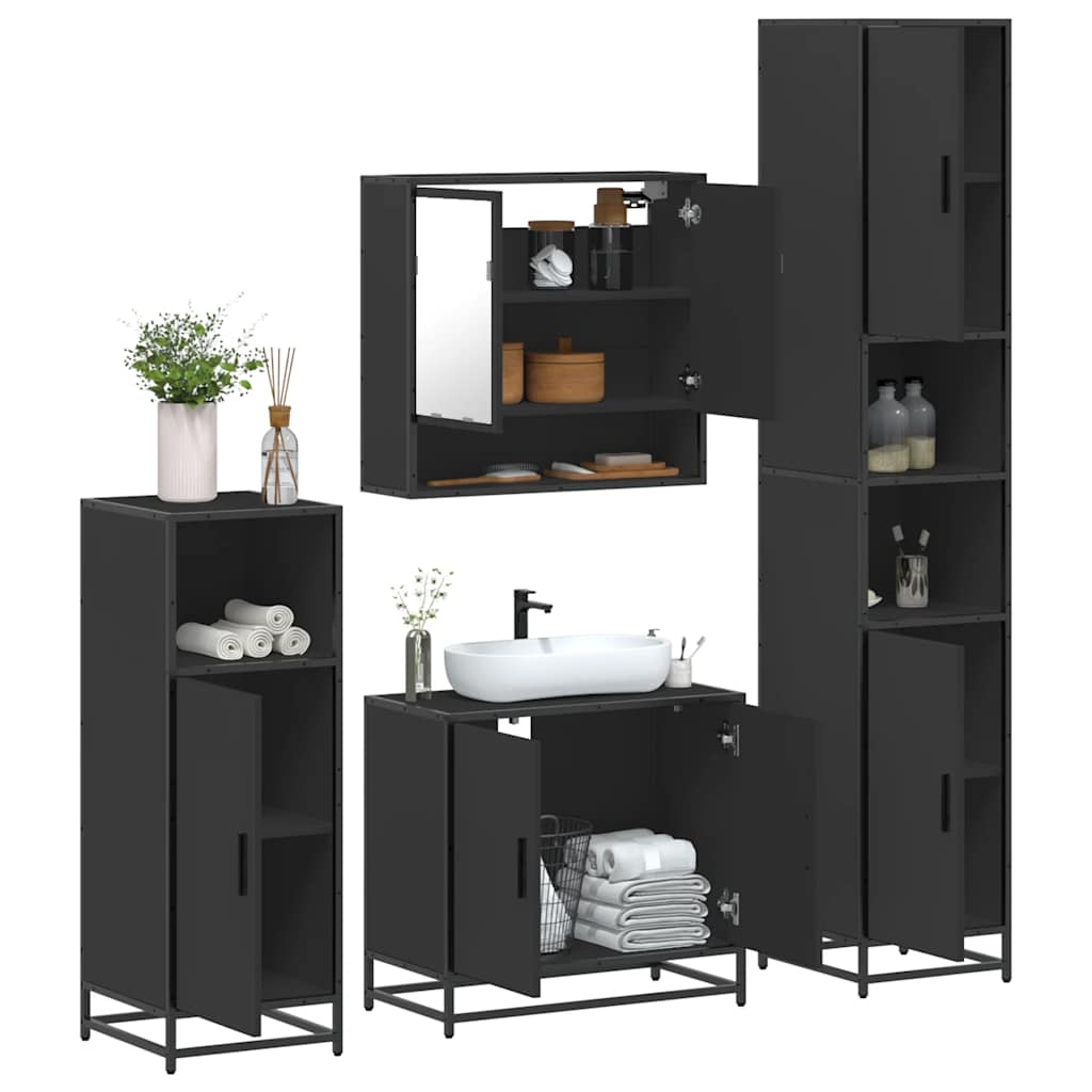 vidaXL 4-delige Badkamermeubelset bewerkt hout bruin eikenkleur