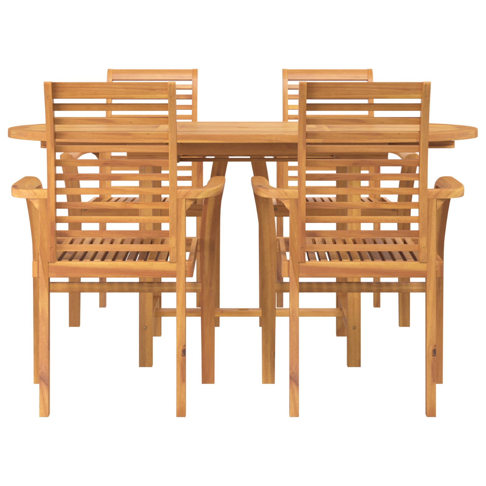 Deze 5-delige tuin eetset is perfect voor je buitenstijl met massief teak. De moderne ovale vorm biedt gemak aan vier gasten en geeft je patio of tuin een frisse uitstraling.