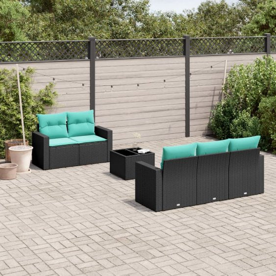 vidaXL 6-delige Loungeset met kussens poly rattan zwart