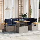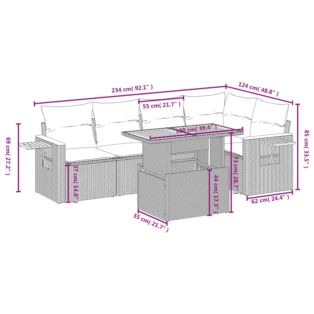 vidaXL 6-delige Loungeset met kussens poly rattan zwart