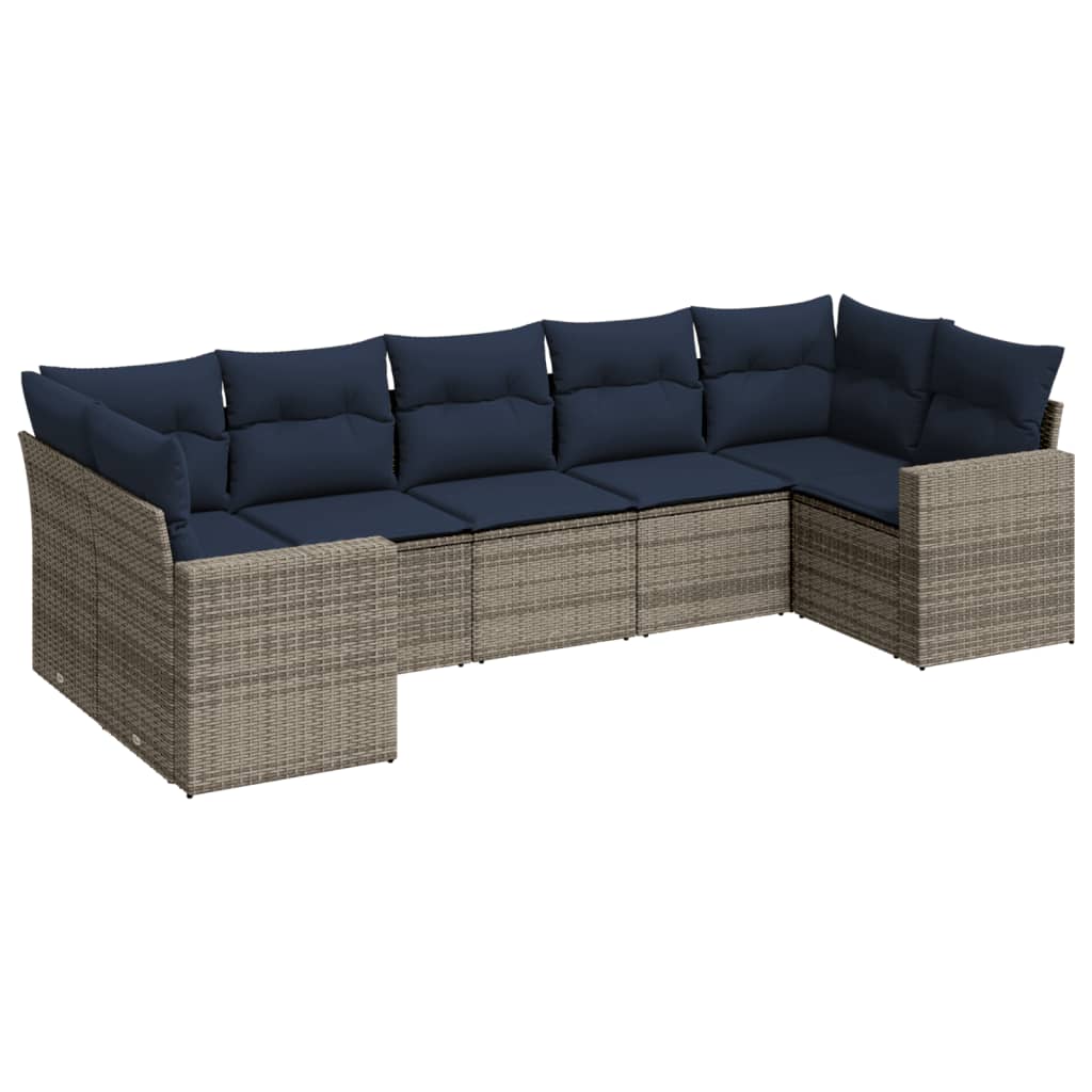 vidaXL 7-Piece Lounge Set with Cushions Poly Rattan Grey