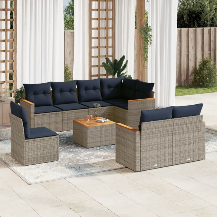 vidaXL 8-Piece Lounge Set with Cushions Poly Rattan Grey
