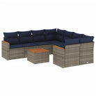 vidaXL 9-delige Loungeset met kussens poly rattan grijs