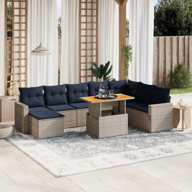 vidaXL 9-delige Loungeset met kussens poly rattan grijs