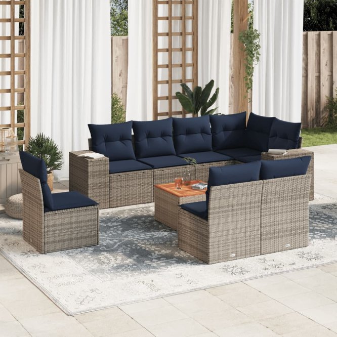 vidaXL 9-Piece Lounge Set with Cushions Poly Rattan Grey