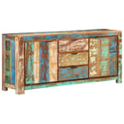 Deze kast is gemaakt van gerecycled hout dat afkomstig is van balken, vloeren en steunbalken van oude gebouwen die zijn gesloopt. Dit hout zal bestaan uit verschillende houtsoorten, zoals grenen, teak, beuk, eik, ceder, mango en acacia. Dit betekent dat het teruggewonnen hout de kenmerken van deze verschillende houtsoorten heeft. Gerecycled hout is al verouderd, verweerd en gedroogd en krimpt en buigt daarom niet. De kast is volledig met de hand gemaakt en de mooie houtnerven maken elk meubelstuk uniek en net iets anders dan de rest. Deze opbergkast heeft 2 deuren en 3 lades die voldoende ruimte bieden om je boeken, tijdschriften en andere spullen binnen handbereik op te bergen. Het stevige blad is ideaal voor het plaatsen van decoratieve spullen, zoals vazen en fotolijstjes.