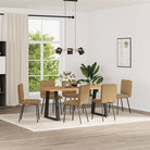 - Robuust en stabiel frame: de eetkamerstoel wordt ondersteund door metaal en hout, wat zorgt voor extra duurzaamheid en stabiliteit.
