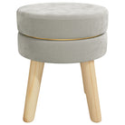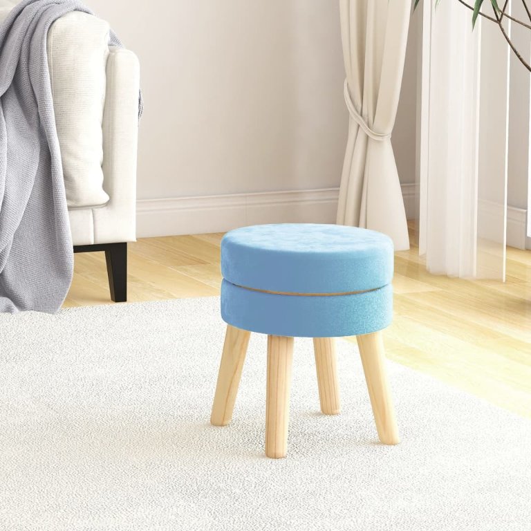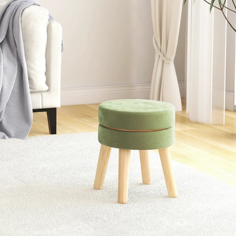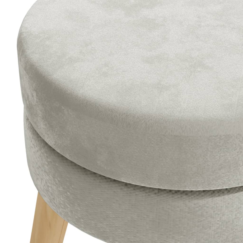 This round ottoman, upholstered in soft velvet, is classic and space-saving. It also offers optimal comfort. The four wooden legs add modern charm and ensure stability. It's a perfect addition to your hallway or living room, giving your home a touch of luxury and trendy charm.