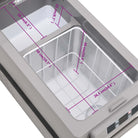 - Grote inhoud: de koelbox heeft een koelzone die voldoende opbergruimte biedt voor het bewaren van je dranken, fruit, groente, ijs en vlees. De uitneembare mand is ook praktisch om de binnenruimte aan te passen en je verschillende etenswaren te ordenen.