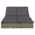 vidaXL Ligbed met kussens 2-persoons poly rattan grijs