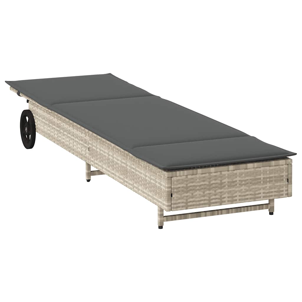 vidaXL Ligbed met wielen en kussen poly rattan beige
