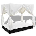 vidaXL Loungebed met gordijnen poly rattan bruin