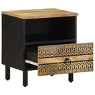 vidaXL Nachtkastje 40x33x46 cm massief ruw mangohout zwart