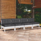 vidaXL Tuinbank 4-zits met crèmekleurige kussens massief grenenhout