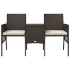 vidaXL Tuinbank met tafeltje en krukken tweezits poly rattan bruin