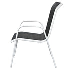 De comfortabele armstoelen hebben een gepoedercoat stalen constructie waardoor ze stevig en stabiel zijn. Dankzij de sterke textileen stof zijn onze tuinstoelen weerbestendig en eenvoudig schoon te maken. De stoelen kunnen ook worden gestapeld om ruimte te besparen wanneer ze niet worden gebruikt. Ontspan en geniet van je buitenruimte op deze comfortabele en duurzame eetstoelen!
