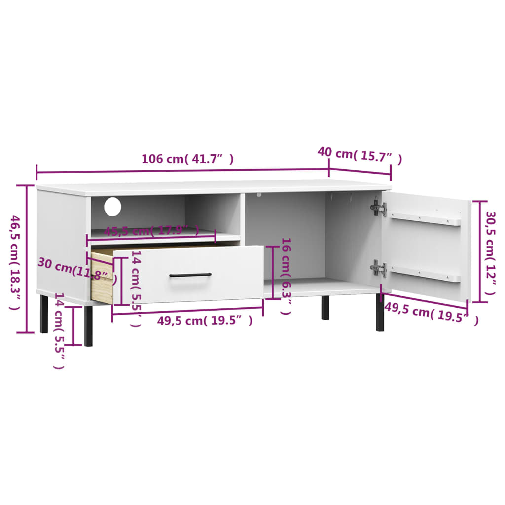 vidaXL Tv-meubel met metalen poten OSLO massief grenenhout wit