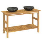 vidaXL Wastafelkast met wasbakken massief teakhout marmer zwart