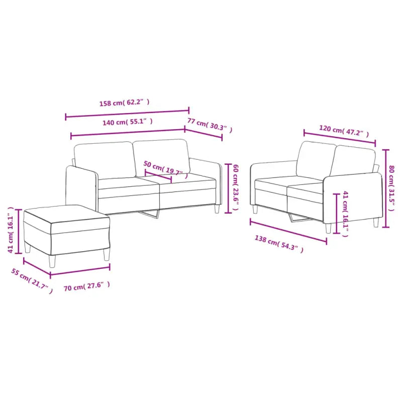 Banken loungeset met zachte fluweelstof en grote totale afmetingen