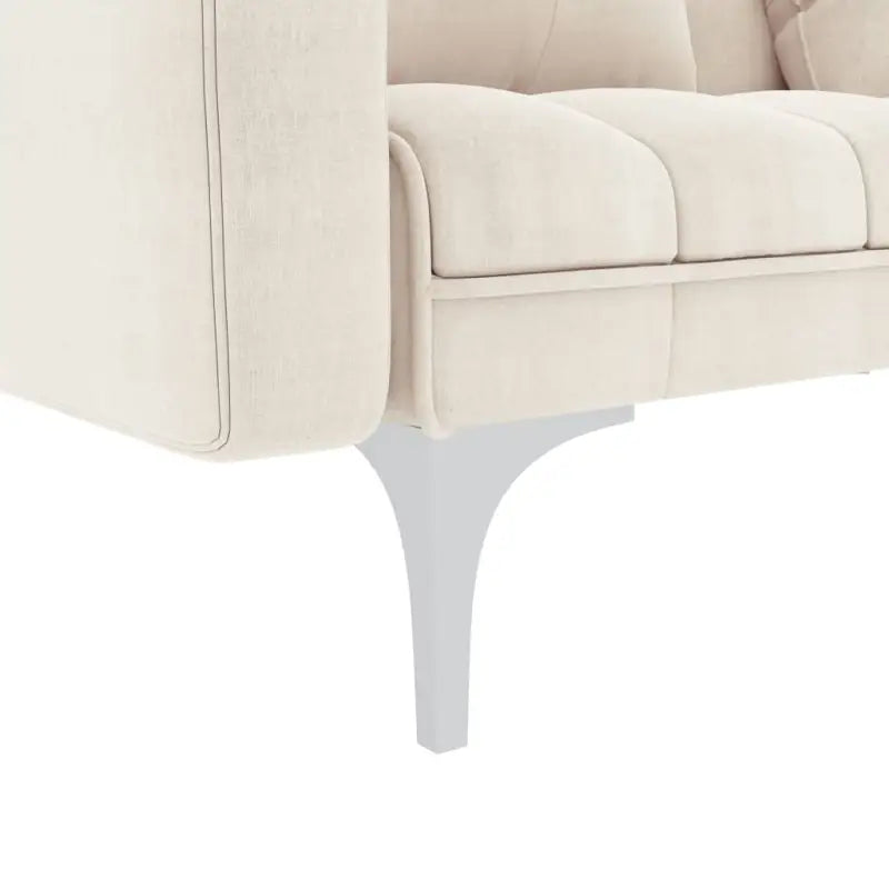 - Materiaal: houten frame, stoffen bekleding en metalen poten