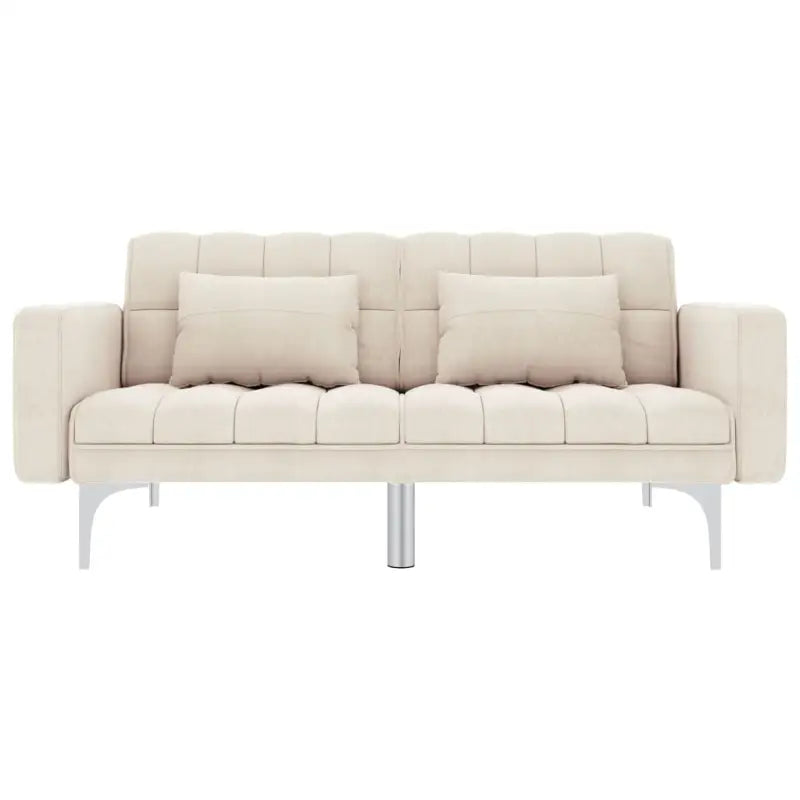 Het houten frame en de metalen poten dragen bij aan de stevigheid en de dikke voering maakt de bank extra comfortbal. Deze slaapbank kan snel en eenvoudig worden veranderd van een bank naar een bed en vice versa. Als bank kan hij in 3 verschillende standen versteld worden. De twee inbegrepen kussens zorgen voor extra zitcomfort.
