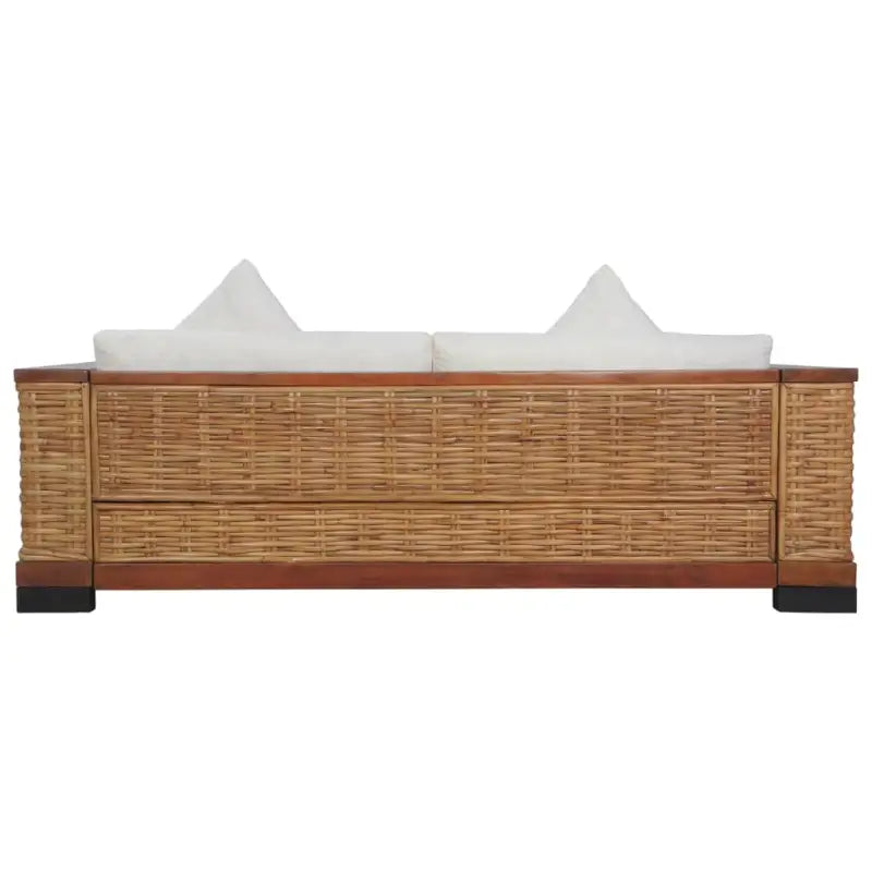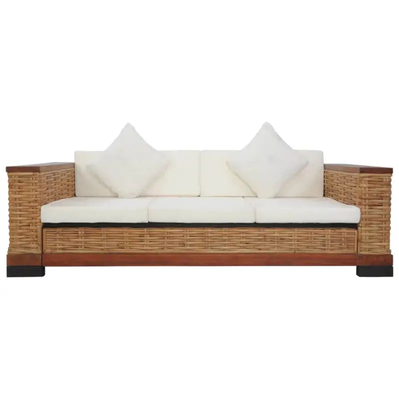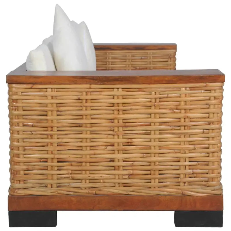 Dankzij het echte rattanmateriaal is de set gemakkelijk schoon te maken, slijtvast en geschikt voor dagelijks gebruik. Hij heeft een stevig houten frame, dat erg duurzaam en stabiel is. De dikke zit- en rugkussens zijn erg comfortabel en zijn wasbaar dankzij de verwijderbare hoezen. Bovendien dragen de brede armleuningen bij aan het zitcomfort.