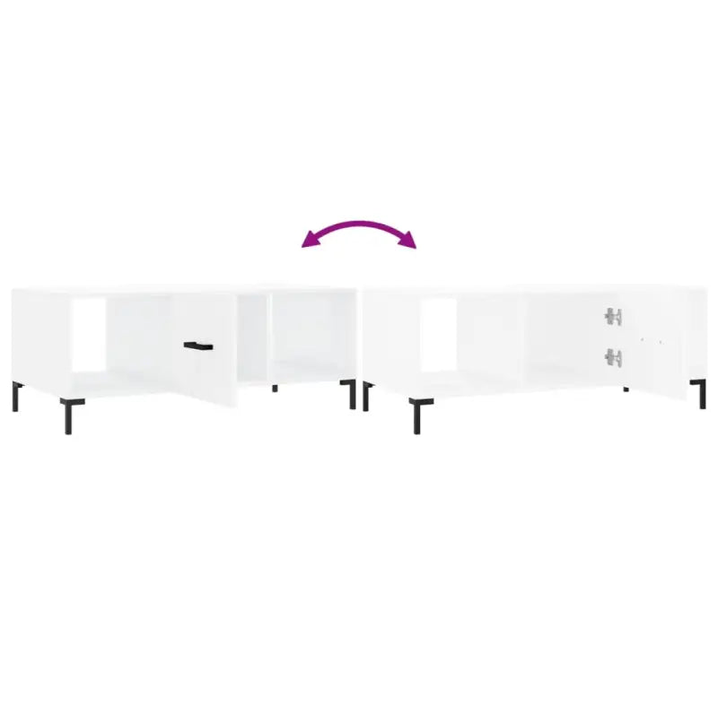 Elegante salontafel met bewerkt hout en ijzeren poten in hoogglans wit