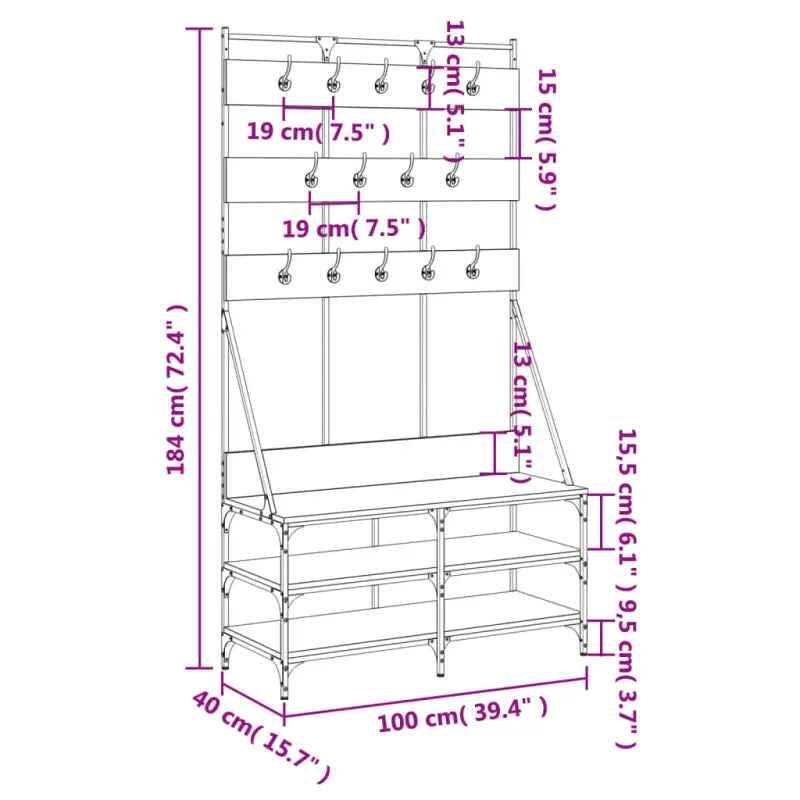 • Voldoende opbergruimte: het kledingrek biedt voldoende ruimte om je kleding en tassen geordend te houden. De onderste schappen zijn perfect voor schoenen.