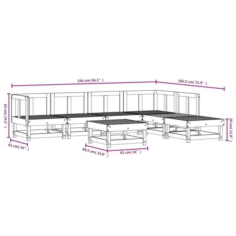 Houten loungeset van geïmpregneerd grenenhout met voetenbank en salontafel