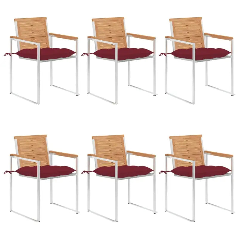 Dit meubel is gemaakt van extreem duurzaam hard teakhout dat gewaterd, in de oven gedroogd en vervolgens fijn geschuurd is om het een zeer glad uiterlijk te geven. Teakhout staat bekend om zijn uitzonderlijke kracht en weerbestendigheid, waardoor het veel geschikter is voor tuinmeubelen dan elke andere houtsoort. Het hout is de perfecte keuze als je een duurzaam tuinmeubelstuk wilt aanschaffen. Het hoogwaardige roestvrijstalen frame maakt de stoelen zeer duurzaam, roestbestendig en stevig. Het meegeleverde kussen is meer dan een praktische toevoeging; het heeft ook een decoratieve functie. Ga lekker buiten zitten voor een heerlijk diner of ontspan en geniet van het weer met deze klassieke tuinstoelenset.