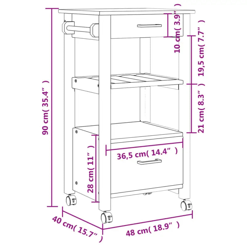 Creëer een onderscheidend vintage tintje en voeg meer opbergruimte toe aan je keuken met deze massief houten keukentrolley!