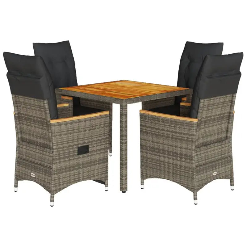 Tuinset van grijs materiaal met massief acaciahout en olieafwerking