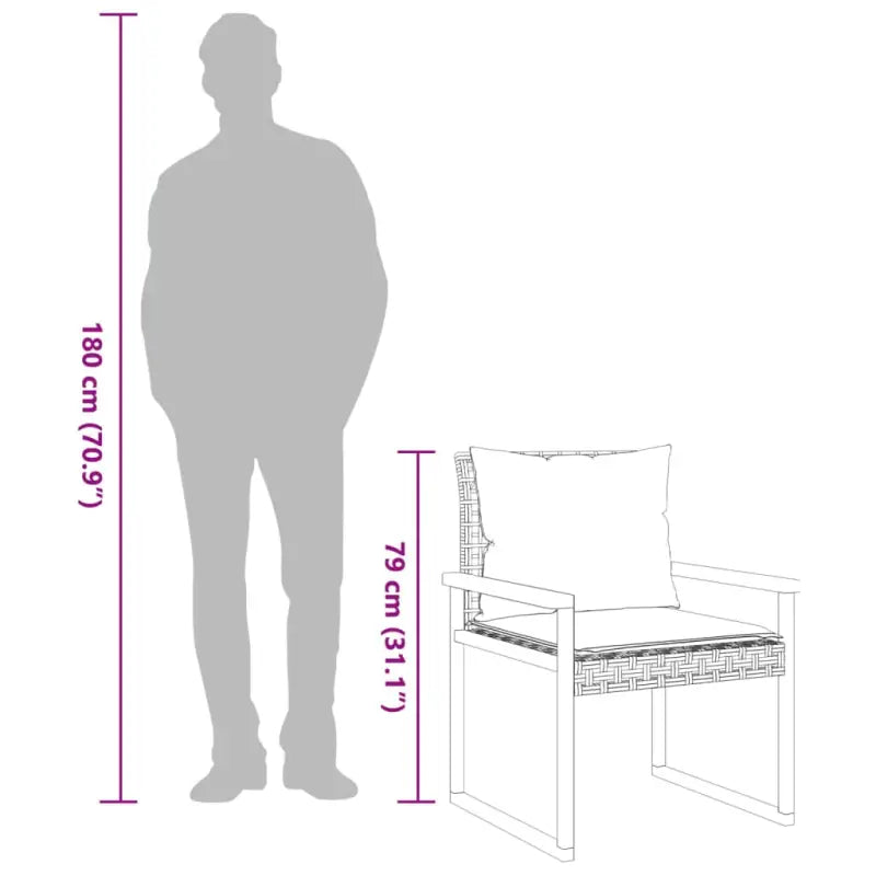 - Materiaal: PE-rattan, gepoedercoat staal, massief acaciahout met een natuurlijke afwerking