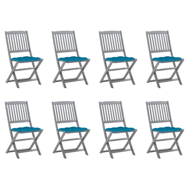 Deze moderne houten stoelenset met kussens voegt een vleugje natuurlijke stijl toe aan je tuin, patio of terras. Deze klapstoelen zijn een goede keuze als je buiten wilt eten.