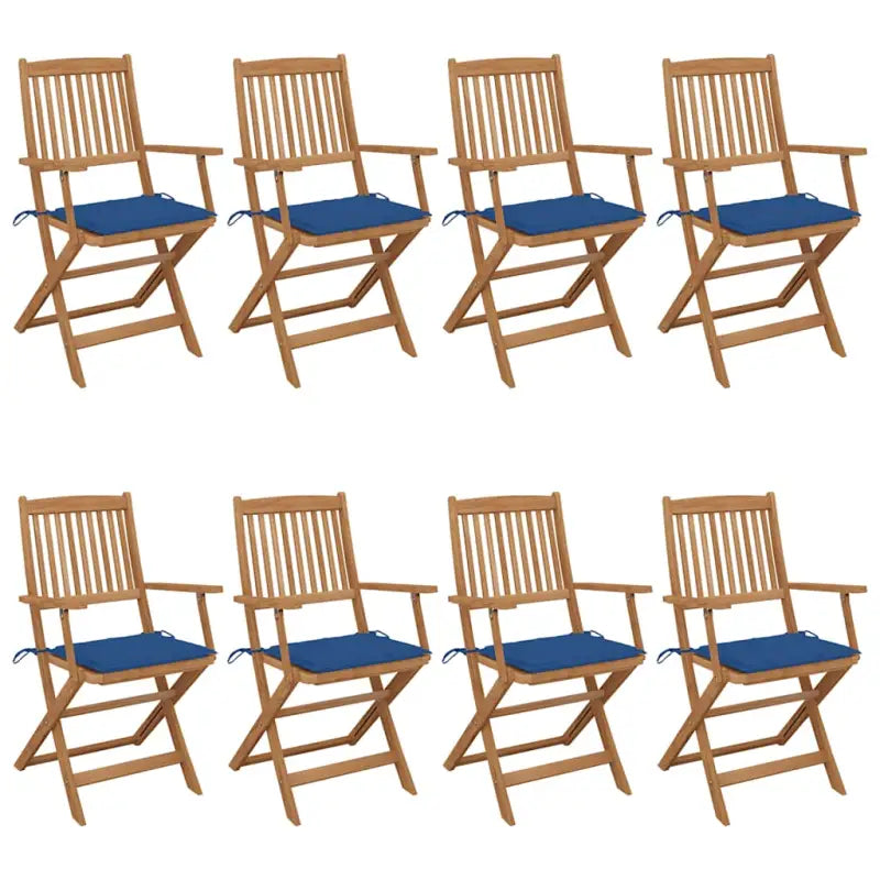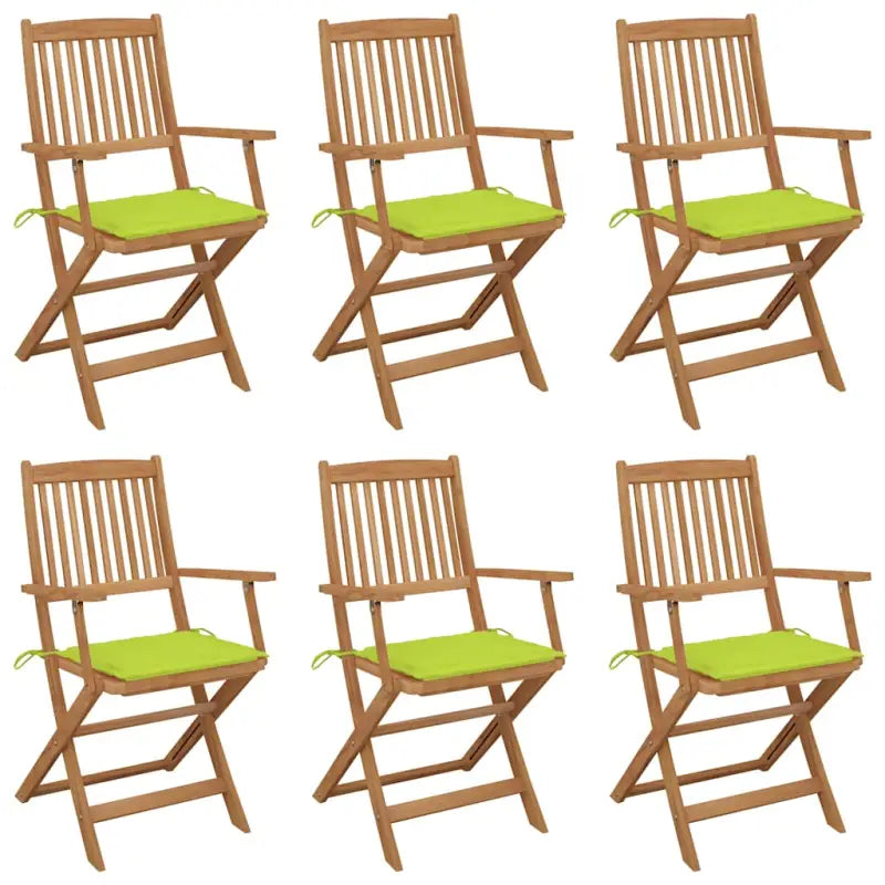 Deze massief acaciahouten inklapbare stoelen met kussens zijn perfect om op te ontspannen en in je tuin of op je terras van de zon te genieten.