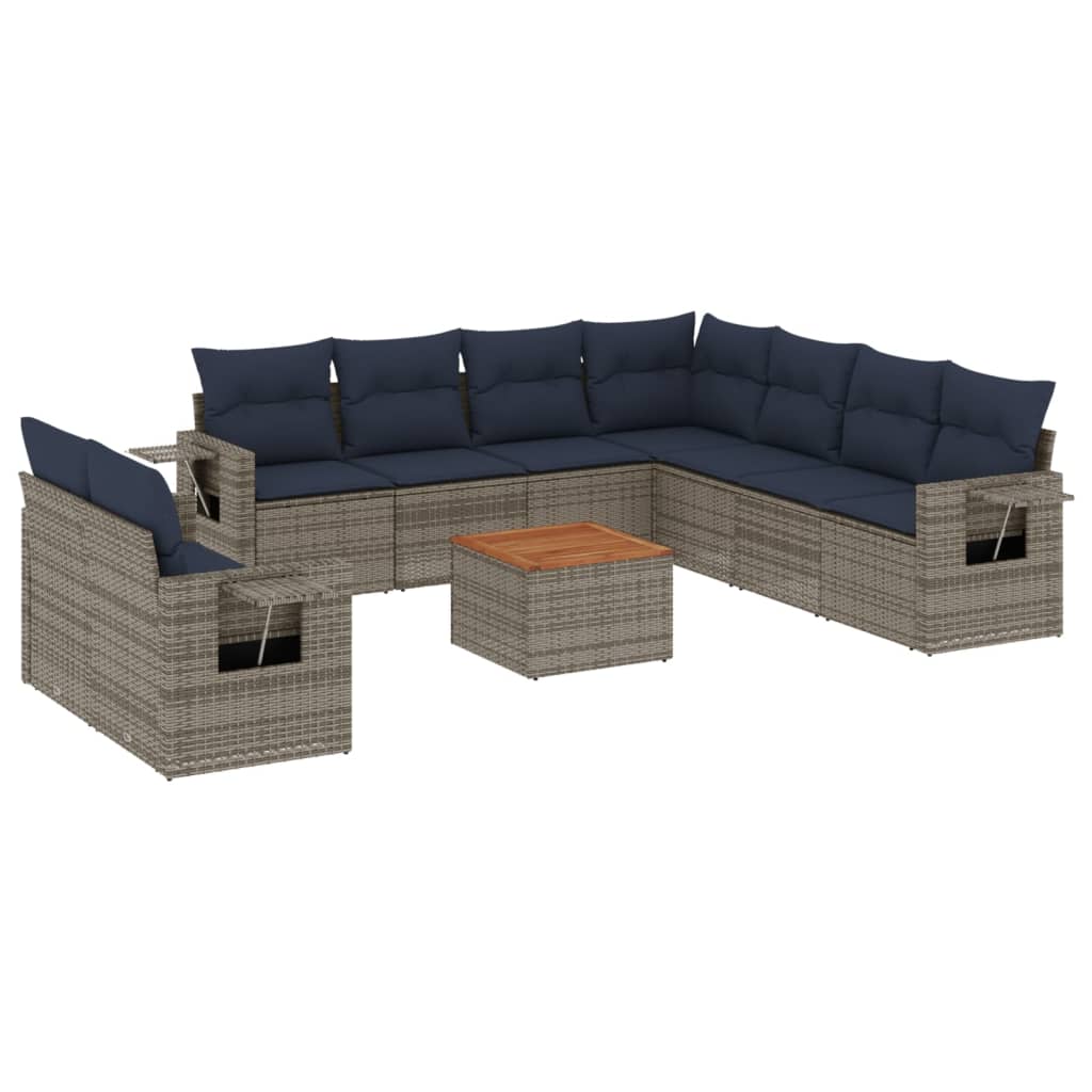 vidaXL 10-delige Loungeset met kussens poly rattan grijs