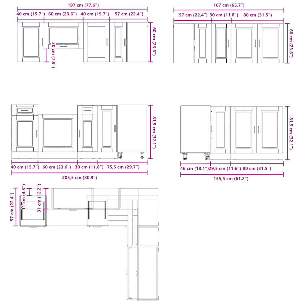 vidaXL 11-delige Keukenkastenset Porto bewerkt hout zwart