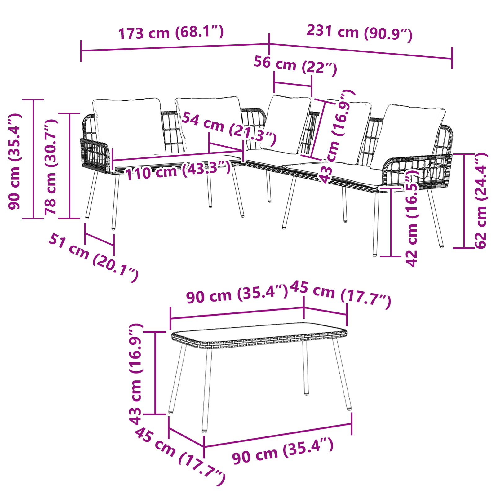 vidaXL 2-delige Tuinbankset met kussens poly rattan zwart