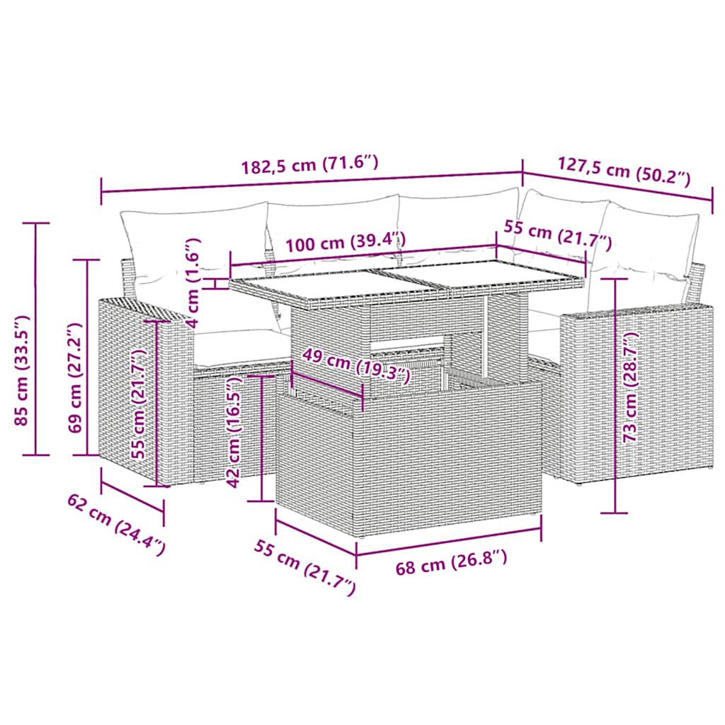 vidaXL 5-delige Loungeset met kussens poly rattan acacia bruin