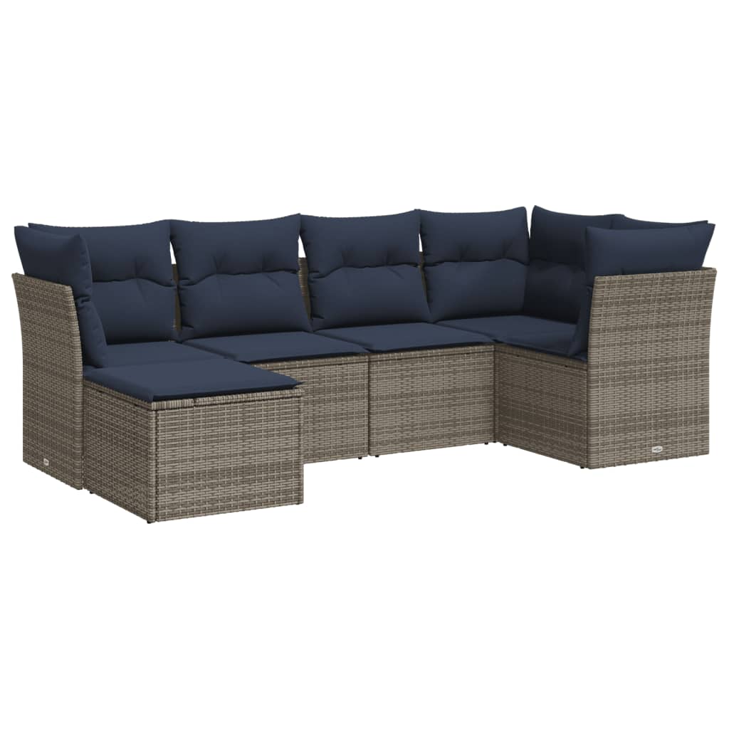 vidaXL 6-delige Loungeset met kussens poly rattan grijs