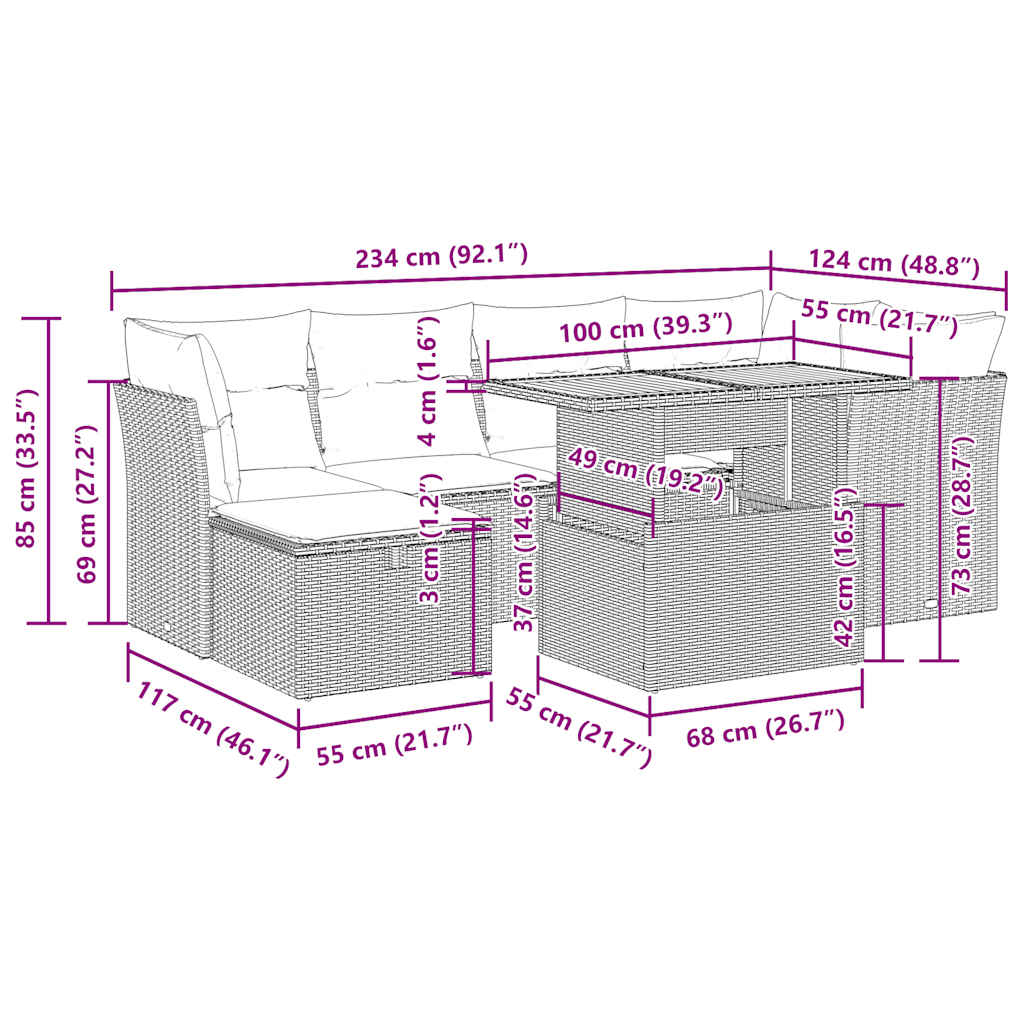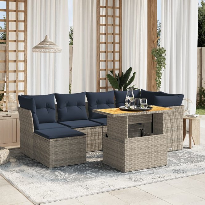 vidaXL 7-delige Loungeset met kussens poly rattan acacia zwart
