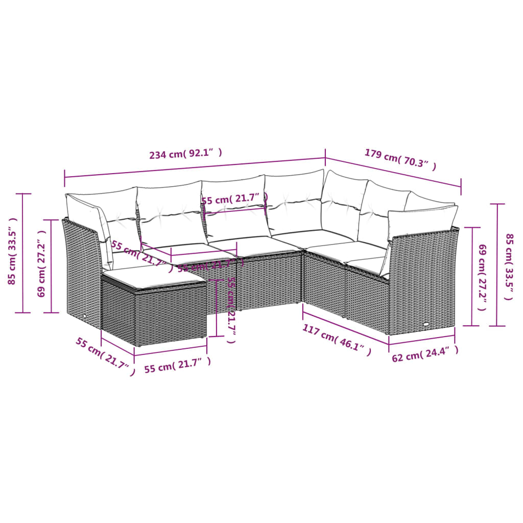 vidaXL 7-delige Loungeset met kussens poly rattan bruin