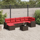 vidaXL 7-delige Loungeset met kussens poly rattan bruin