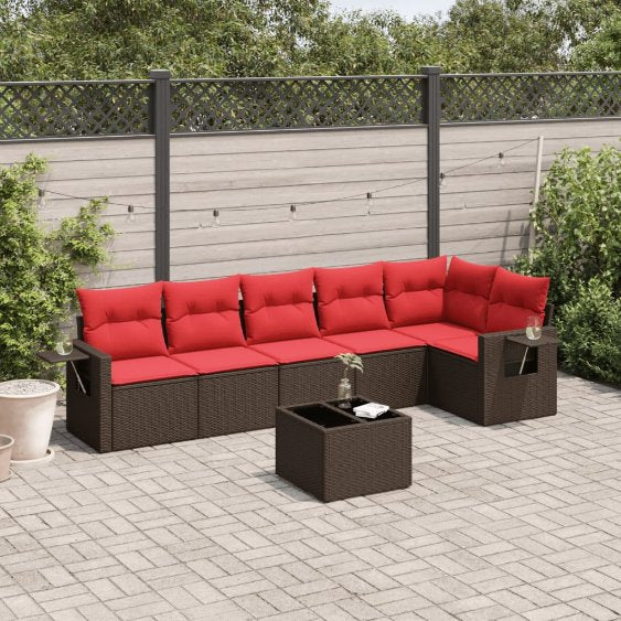 vidaXL 7-delige Loungeset met kussens poly rattan bruin