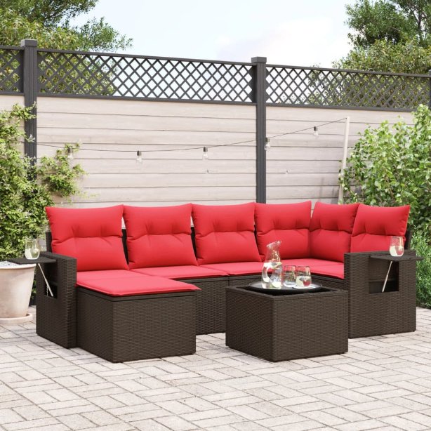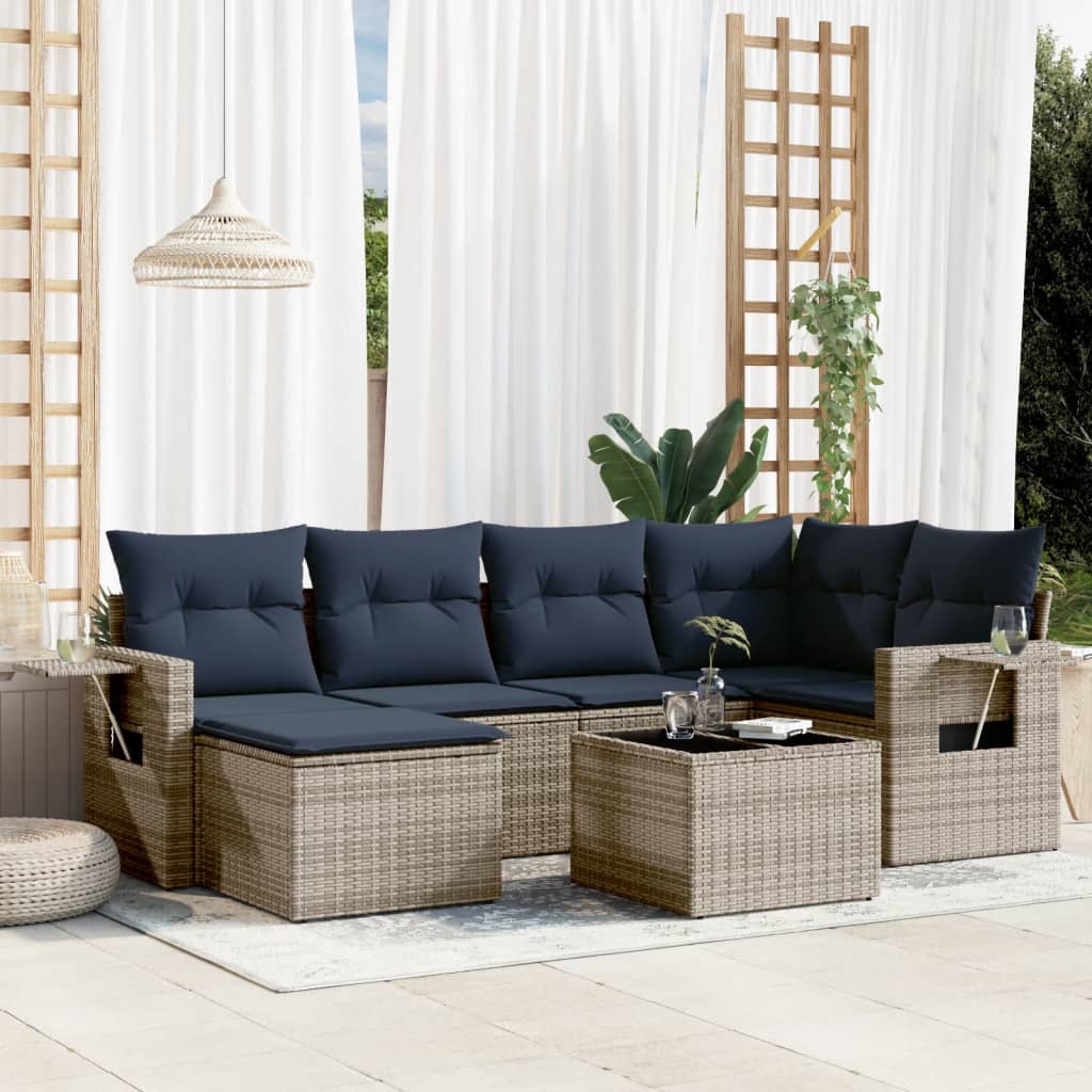 vidaXL 7-delige Loungeset met kussens poly rattan grijs