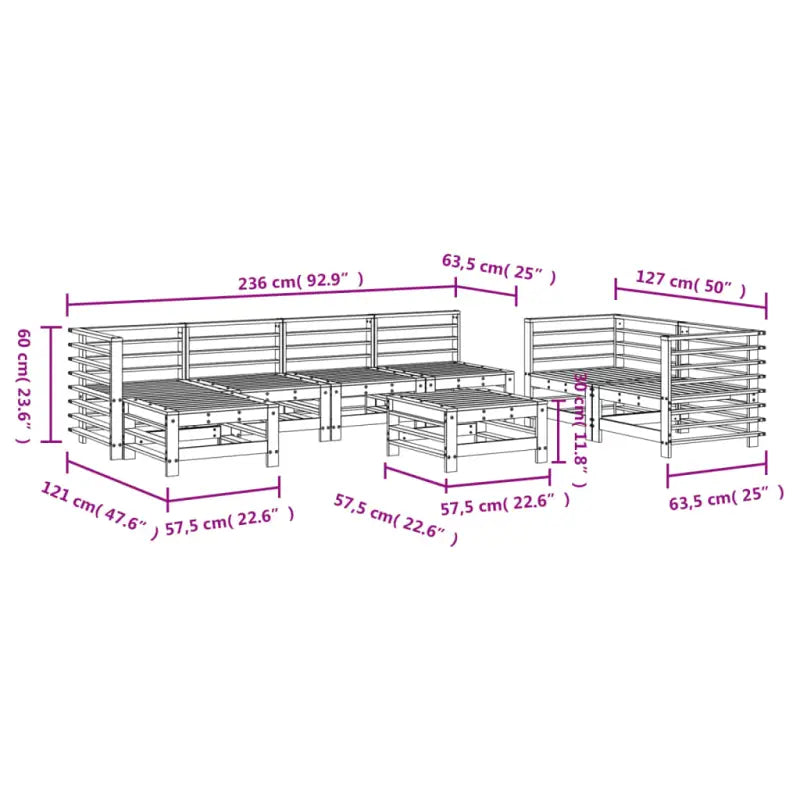 Houten loungeset van massief grenenhout met voetenbank en salontafel