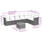 vidaXL 8-delige Loungeset met kussens poly rattan grijs